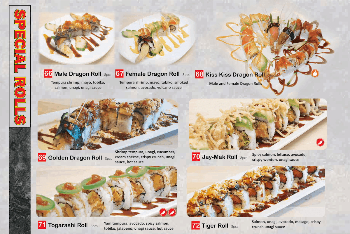 Moreover, Kinjo's Special Maki rolls, such as the Hanabi Oshizushi and the Cowboy Oshizushi, are a testament to the restaurant’s innovative approach. You’ll find layers of seasoned rice and ingredients that speak of both tradition and creativity. Each roll is not just a meal but a well-composed piece of art that tantalizes the senses.